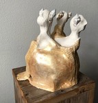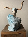 2008keramiek opgebouwde bedelaar geblindeerd met een lompen keramieken doek